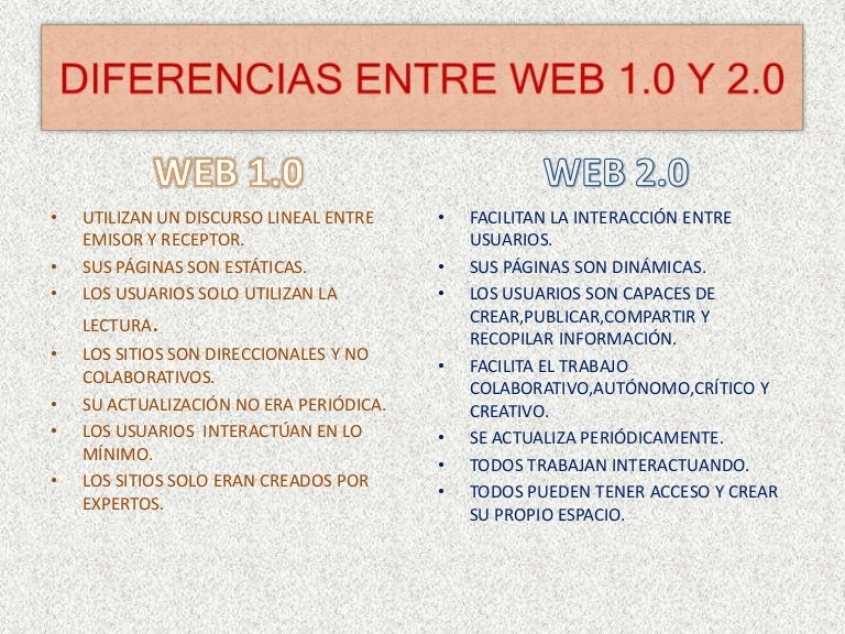 Estas son las diferencias que podemos encontrar entre la WEB 1.0 Y LA WEB 2.0